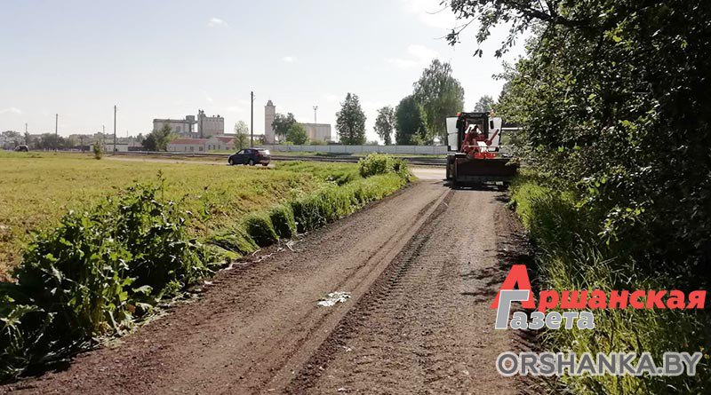 Работники Оршанской спецавтобазы проводят работы по ремонту грунтовых дорог с использованием асфальтогранулята.
