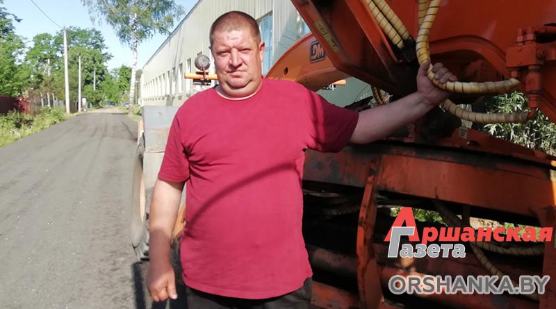 Сегодня машинист автогрейдера Владимир Кравченко укладывает слой за слоем асфальтовую крошку по переулку 2-му Восточному в Орше.