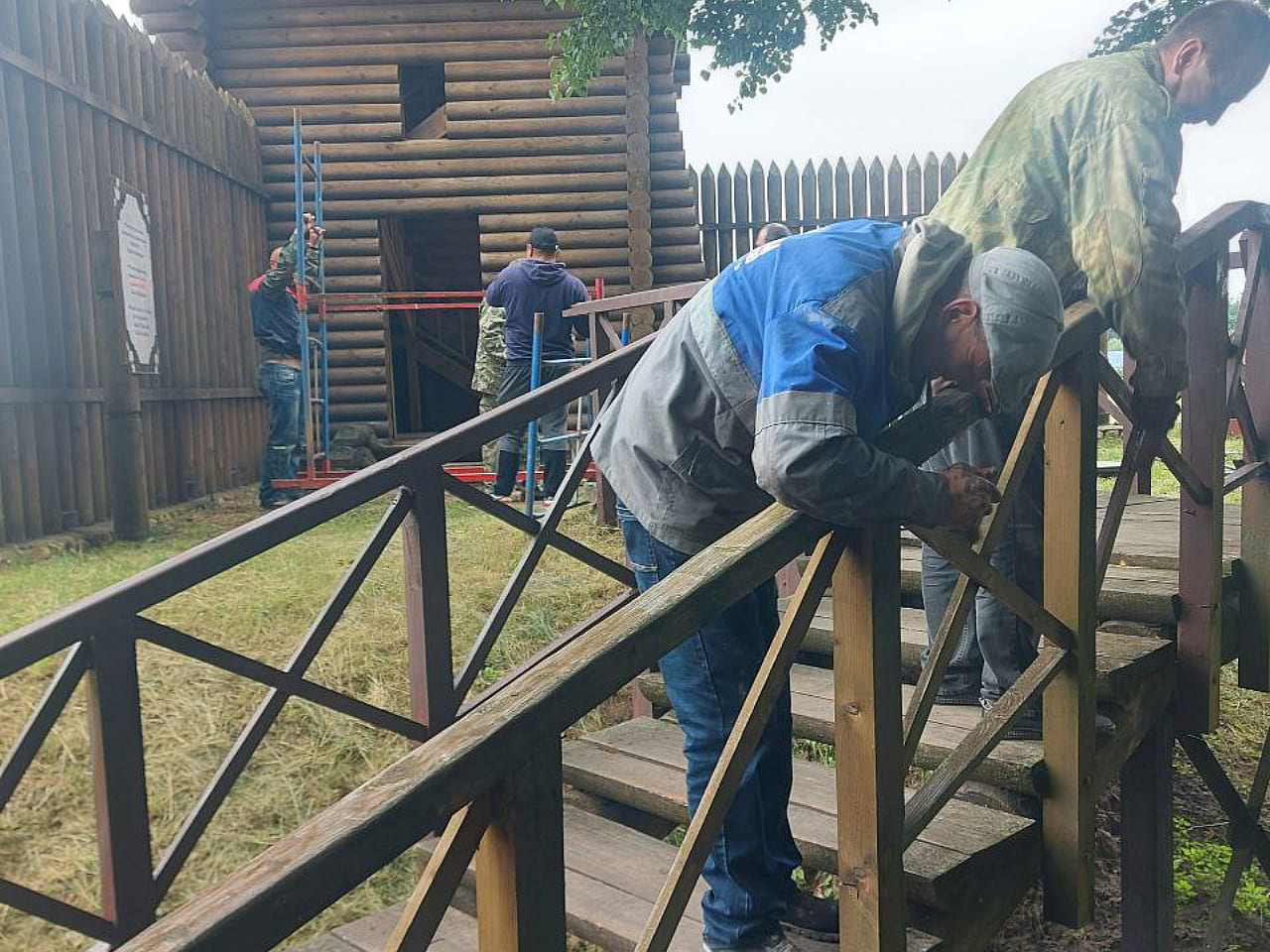 Коллектив КУП «Оршанская спецавтобаза» во главе с руководителем предприятия Татьяной Александровной Петроченко дружно благоустроили территорию Замчище «Петровский Вал» в городском поселке Копысь произвели покраску деревянных конструкций башен, ограждения, лестничного марша, навели порядок на территории.
