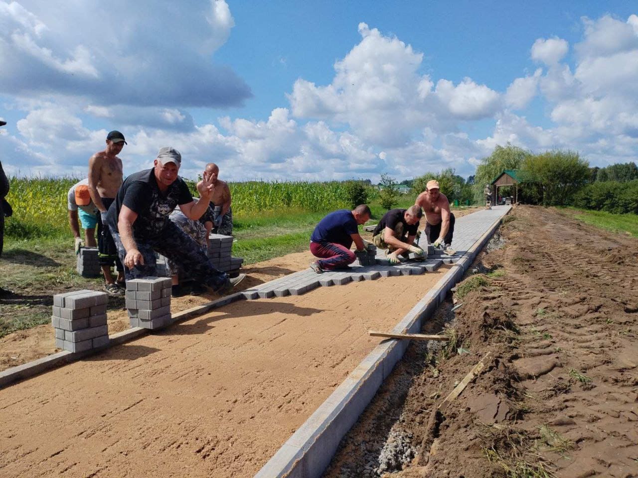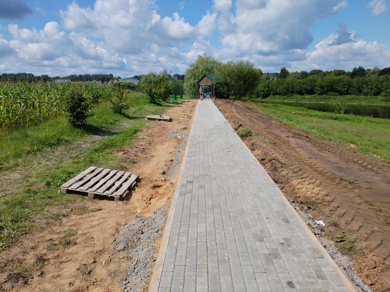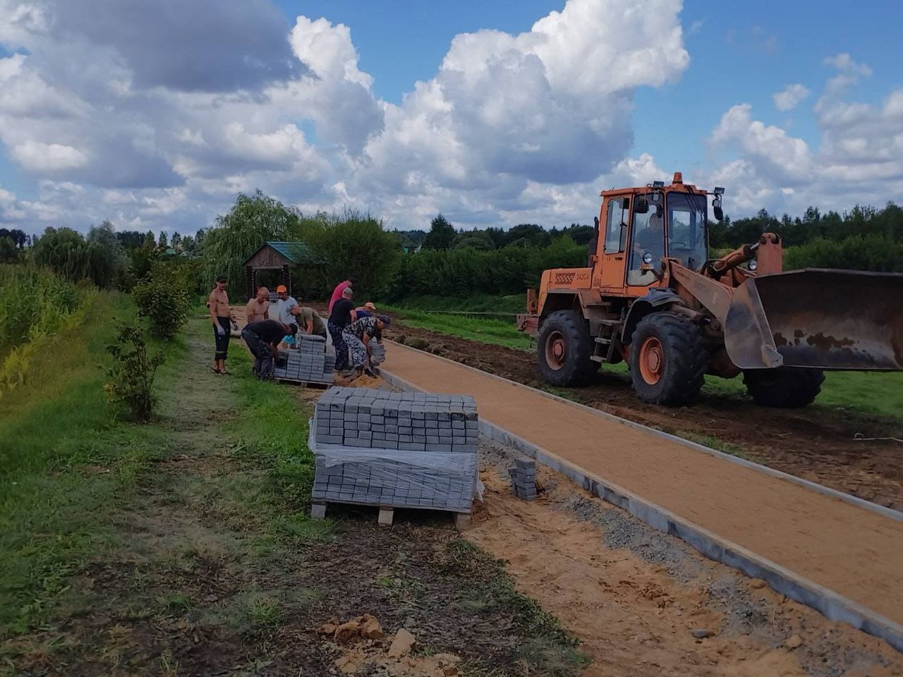 Устройство пешеходной дорожки на территории пляжа в городском поселке Копысь