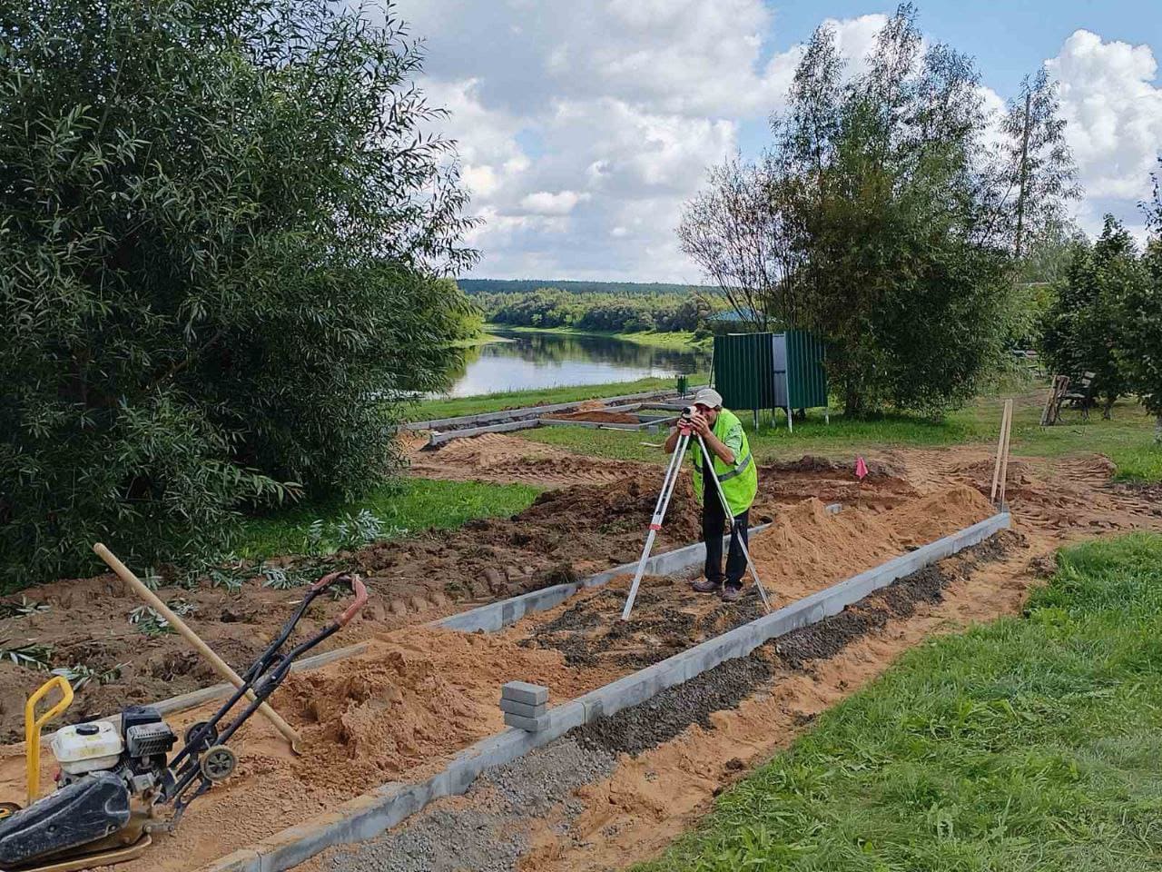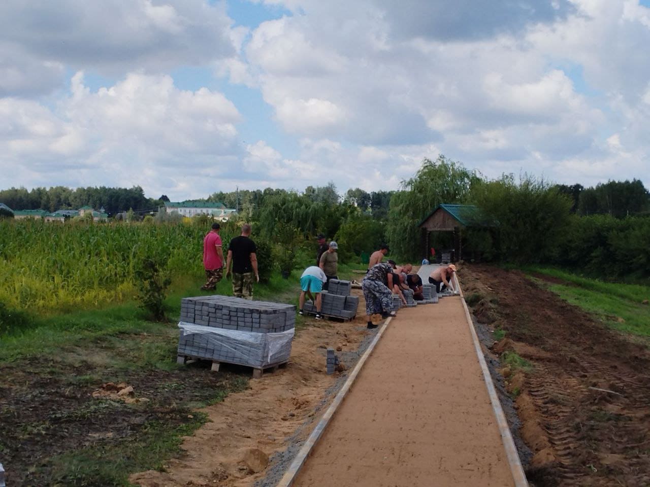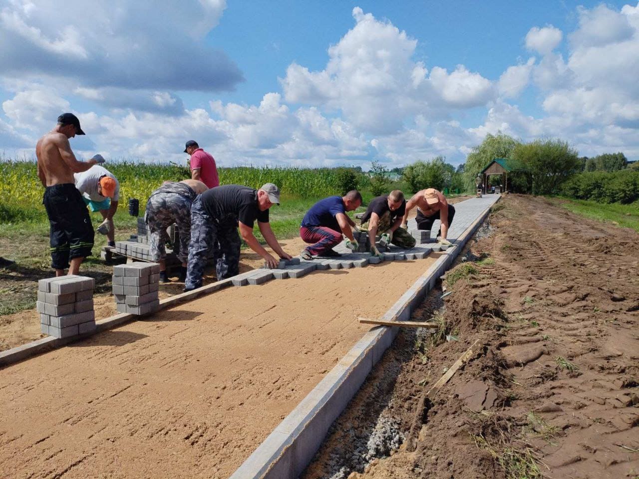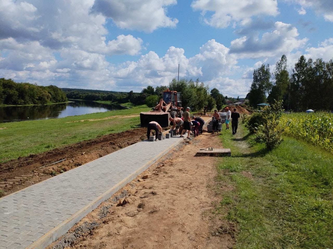 Устройство пешеходной дорожки на территории пляжа в городском поселке Копысь