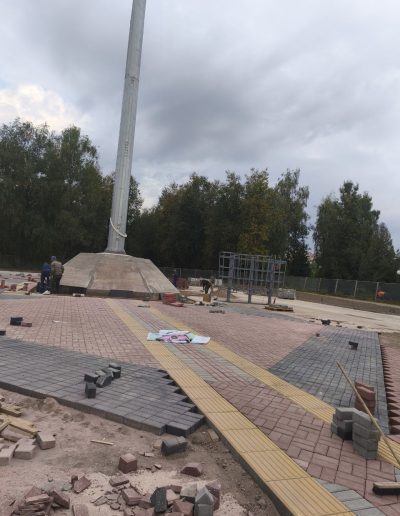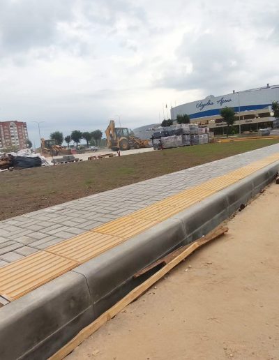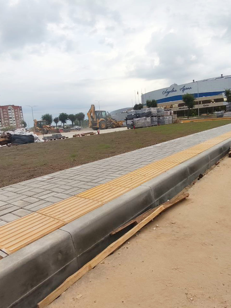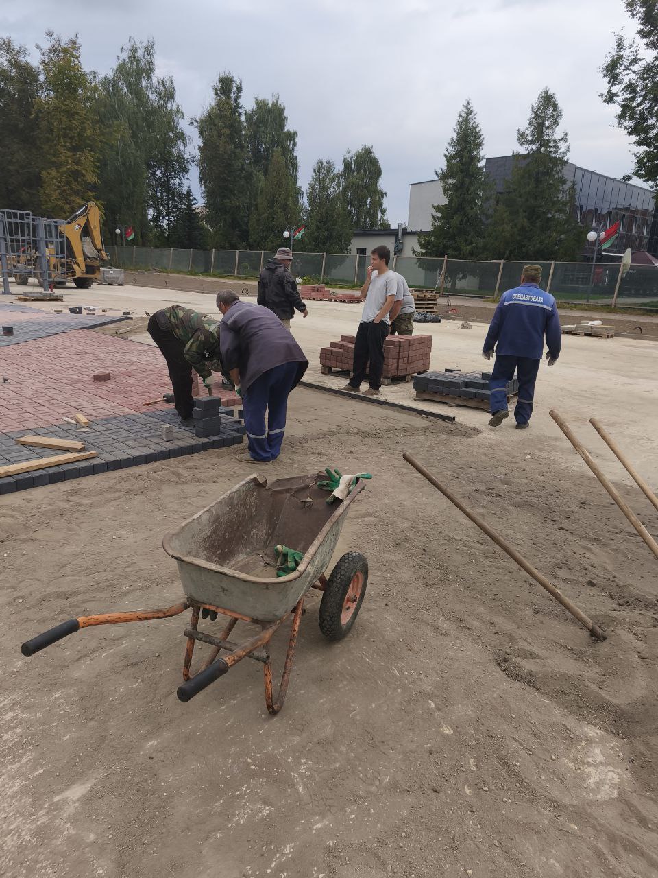 Здесь на этой неделе работники КУП «Оршанская спецавтобаза» продолжили работы по укладке тротуарной плитки и плитки для людей с ограниченными возможностями по зрению.