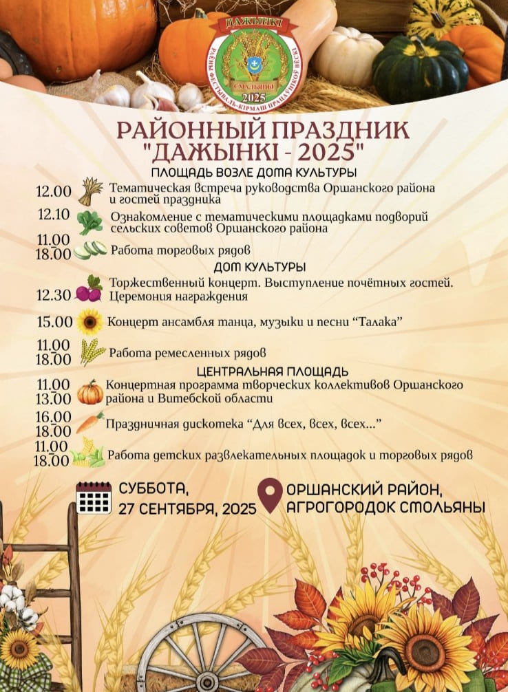 Благоустройство аг.Смольяны к районному празднику «Дажынки — 2025» Сен 26, 2025 | Новости предприятия Работники КУП «Оршанская спецавтобаза» благоустраивают территорию к районному празднику «Дажынки-2025», который 27 сентября пройдёт в агрогородке Смольяны Оршанского района Смотреть все новости