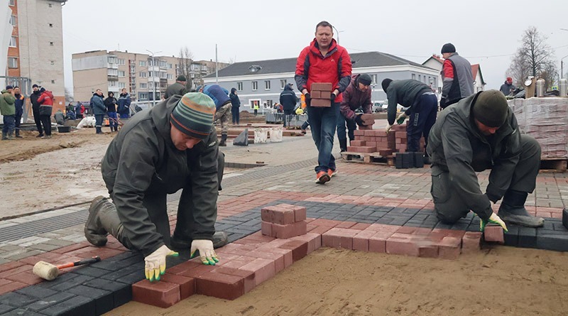 Более 50 человек из Оршанской спецавтобазы, Оршакомхоза, стройтреста №18, заводов «Легмаш» и «Красный борец», инструментального завода, подрядной организации «ДЛС» трудились на благоустройстве будущего сквера Трудовой Славы, который располагается на пересечении улиц Сергея Грицевца и Константина Заслонова