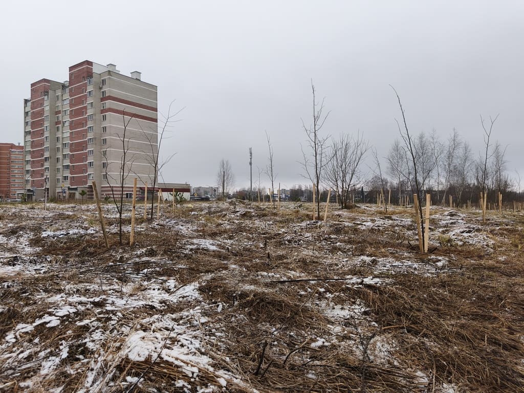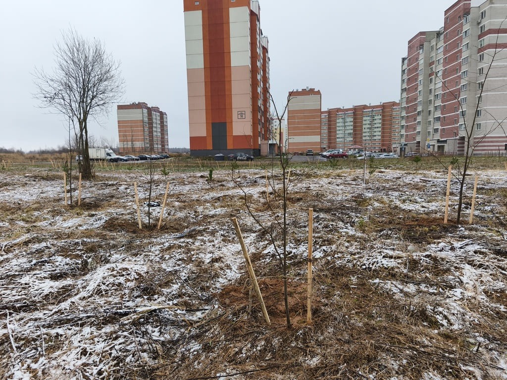Рабочие зелёного строительства и инженерно-технические работники провели работы по посадке деревьев в районе дома 14 по ул.Анатолия Соляникова. Всего было посажено 102 саженца породы сосна, 105 липы и 33 клёна.